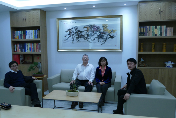 冯志海董事长与集团科技公司顾问Jan Anderse(驻英国甲骨文公司市场总监)座谈合影