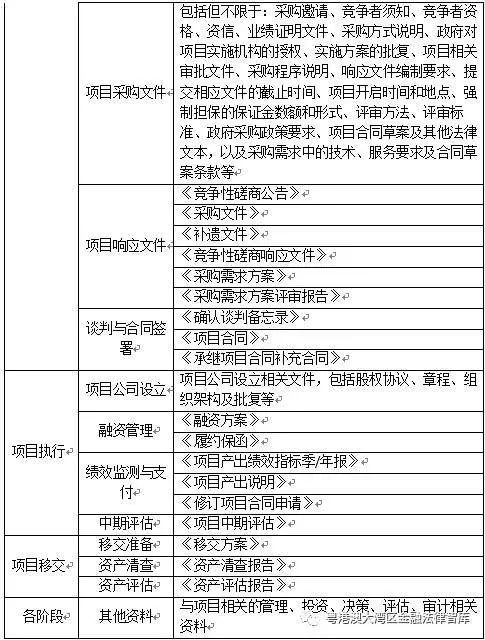 2、PPP 项目各阶段相关资料在 PPP 项目开展绩效评价过程中,需要根据项目实际情况,收集项目各阶段所形成的相关资料,具体如表 7 所示: